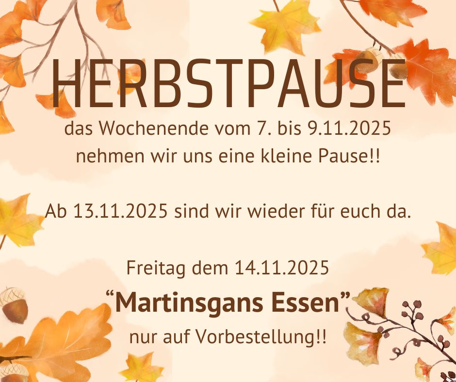 Bestellungen bis 15 Minuten vor Küchenschluss.